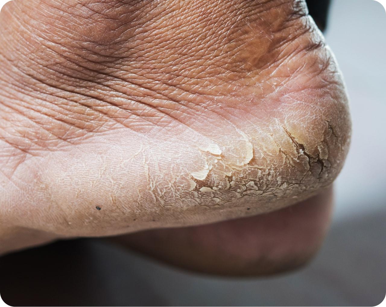 The skin on the heels is naturally dry and lacks oil glands. Standing for long periods, walking barefoot, wearing open-backed shoes or sandals, and exposure to dry environments can all contribute. In some cases, underlying conditions such as eczema, psoriasis, thyroid dysfunction, or obesity may play a role.