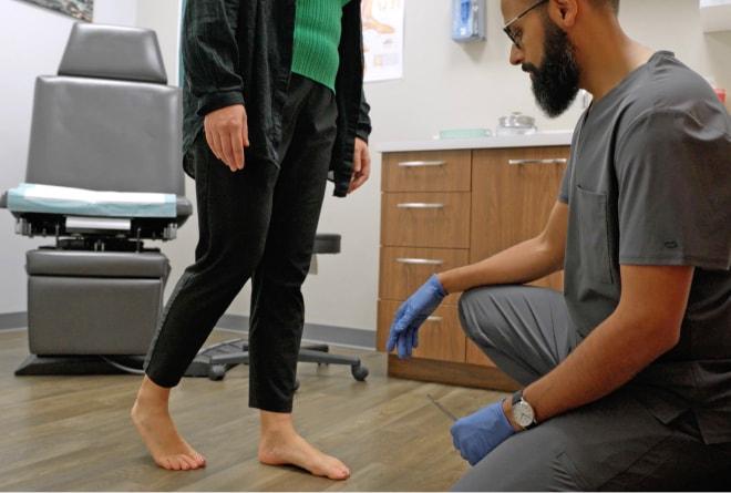 A thorough foot and ankle exam is performed, including joint movement, muscle strength, alignment, and skin and nail health. When appropriate, we assess how you walk and stand to identify biomechanical contributors to your symptoms.