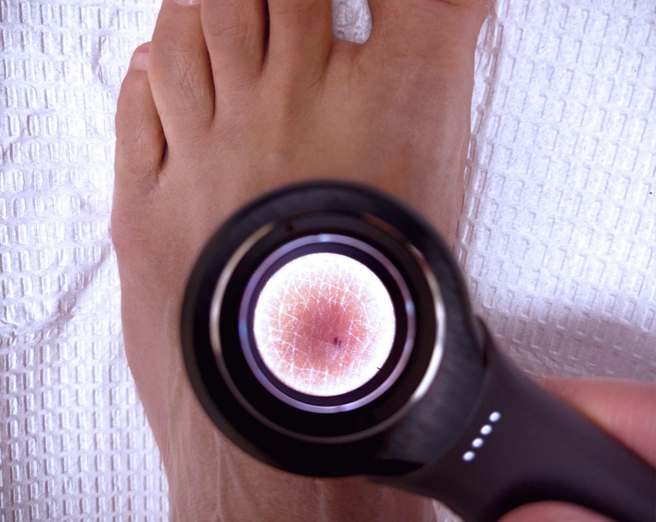 Allows for detailed, magnified evaluation of skin lesions, rashes, and pigment changes.